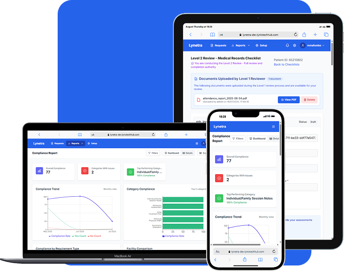 Lenetra serves as a dedicated medical records custodian for behavioral health practices, specializing in documentation integrity and audit readiness. Before billing companies or internal revenue cycle management (RCM) teams submit records, Lenetra conducts comprehensive Level 1 and Level 2 audits to ensure all documentation aligns with ASAM criteria and payer-specific requirements.